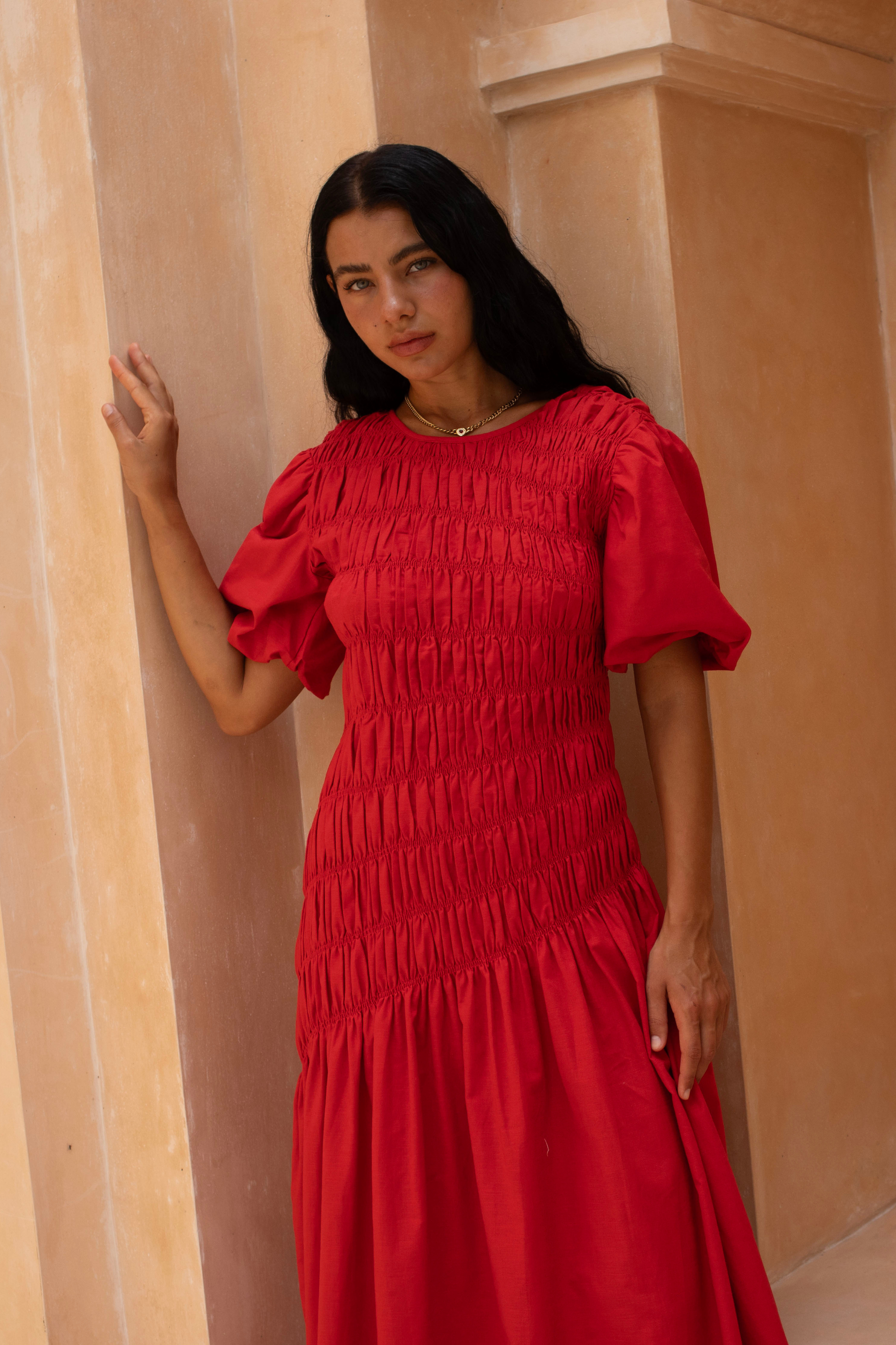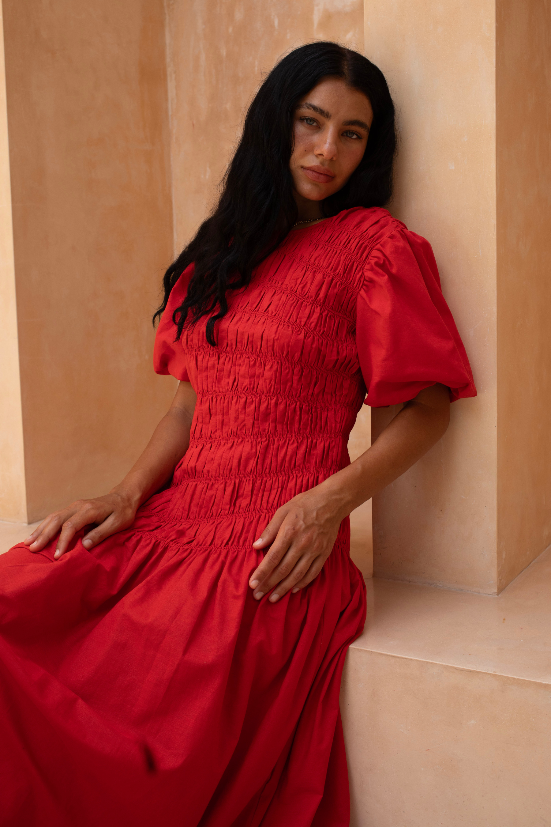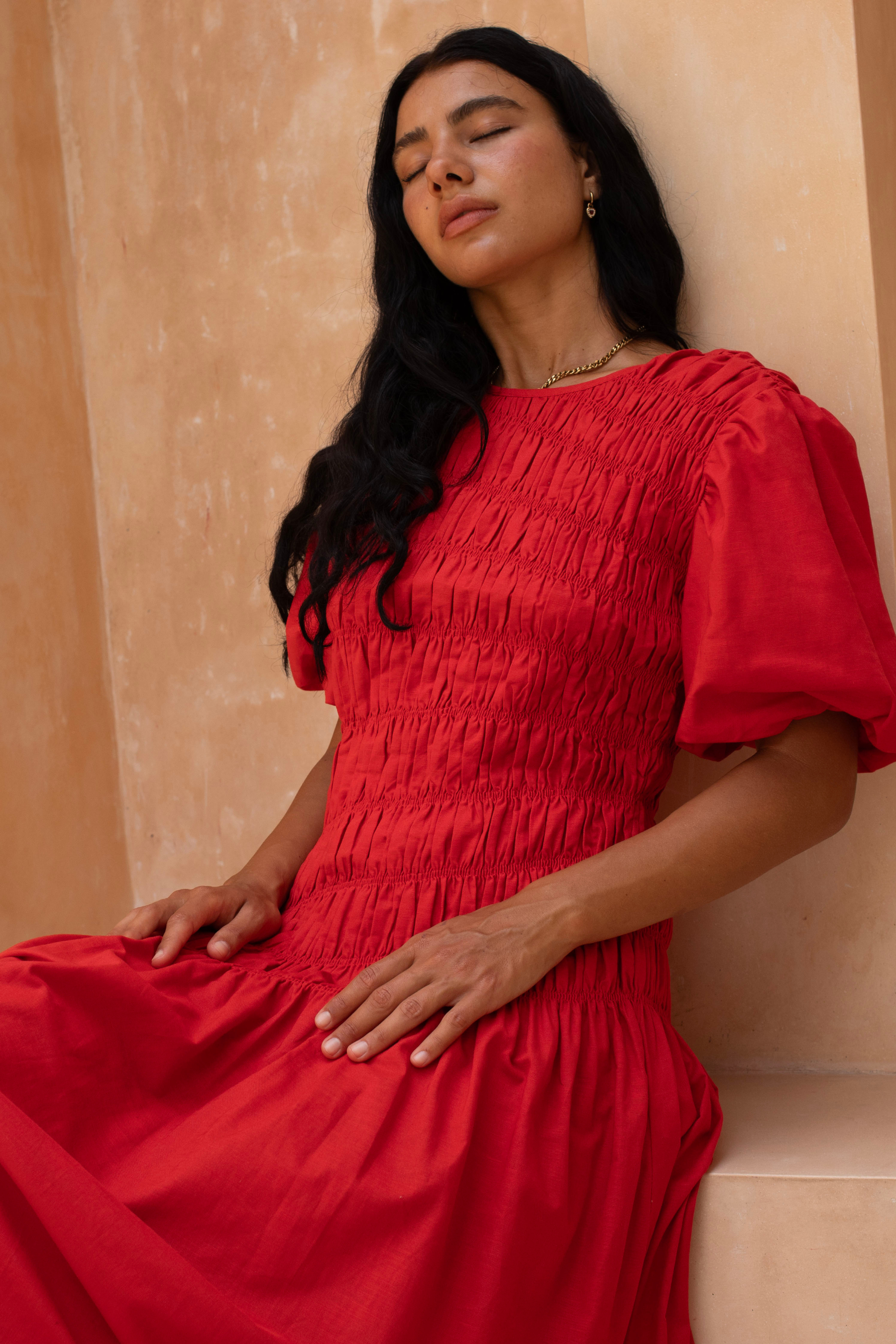 Make an entrance this event season in the Calli Midi. Crafted in a striking red hue, this feminine silhouette features a flattering fit with effortless flow, designed to take you from long lunches to evening celebrations with ease.