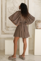 Crafted from a premium blend of 55% linen and 45% cotton, this mini brings a refined structure and breathable comfort to our beloved Mimi silhouette. The exclusive Espresso Dot print blends warm chocolate tones with soft white polka dots, creating a vintage-inspired yet modern look that feels effortlessly chic.