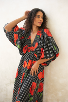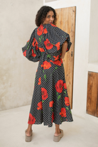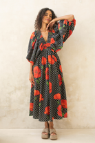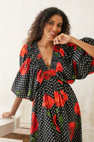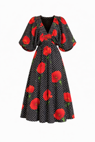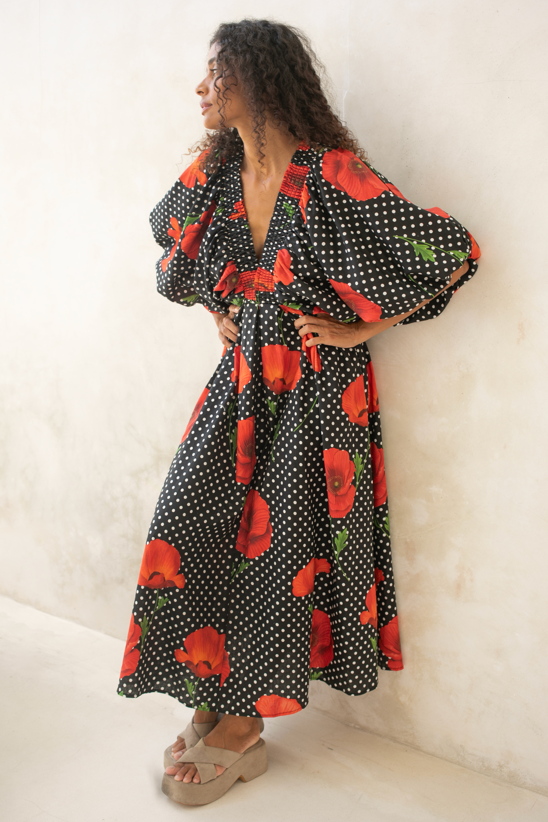 Introducing the Mimi Midnight Poppy Midi Dress, a striking new addition to our Luxe Collection.