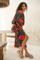 Crafted from a premium blend of 55% linen and 45% cotton, this dress offers a beautifully structured yet breathable feel—perfect for warm summer evenings and elevated daytime moments. The unique hand-drawn Midnight Poppy print transforms our signature Mimi silhouette into a true statement piece, blending bold red florals with delicate monochrome spotting for a touch of European drama.