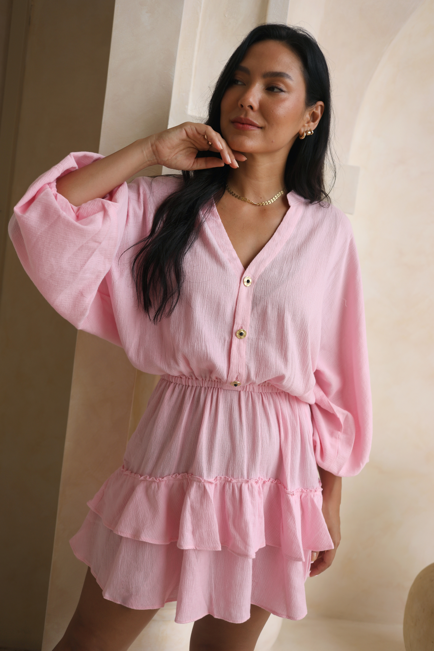 Our luxe Rosetta Pink Smock Dress, with its unique and unexpected hue, has a relaxed voluminous feel, and radiates an effortless beauty that is hard to look away from.