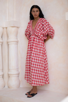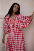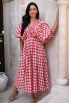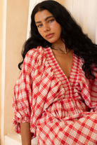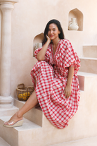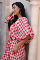 Mimi Red Blossom Gingham Midi Dress
