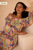 Say hello to the Campari Blu Off Shoulder Mini Dress ~ your wardrobe go-to this summer. Featuring a hand-drawn Italian-inspired tile print, this beauty is made to transport you to a European summer's dream.