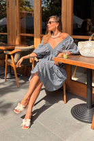Crafted in an organic cotton timeless gingham print. It features playful balloon sleeves, a shirred neck detail, and a full, feminine skirt that moves with you.