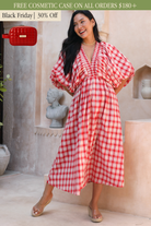 Mimi Red Blossom Gingham Midi Dress