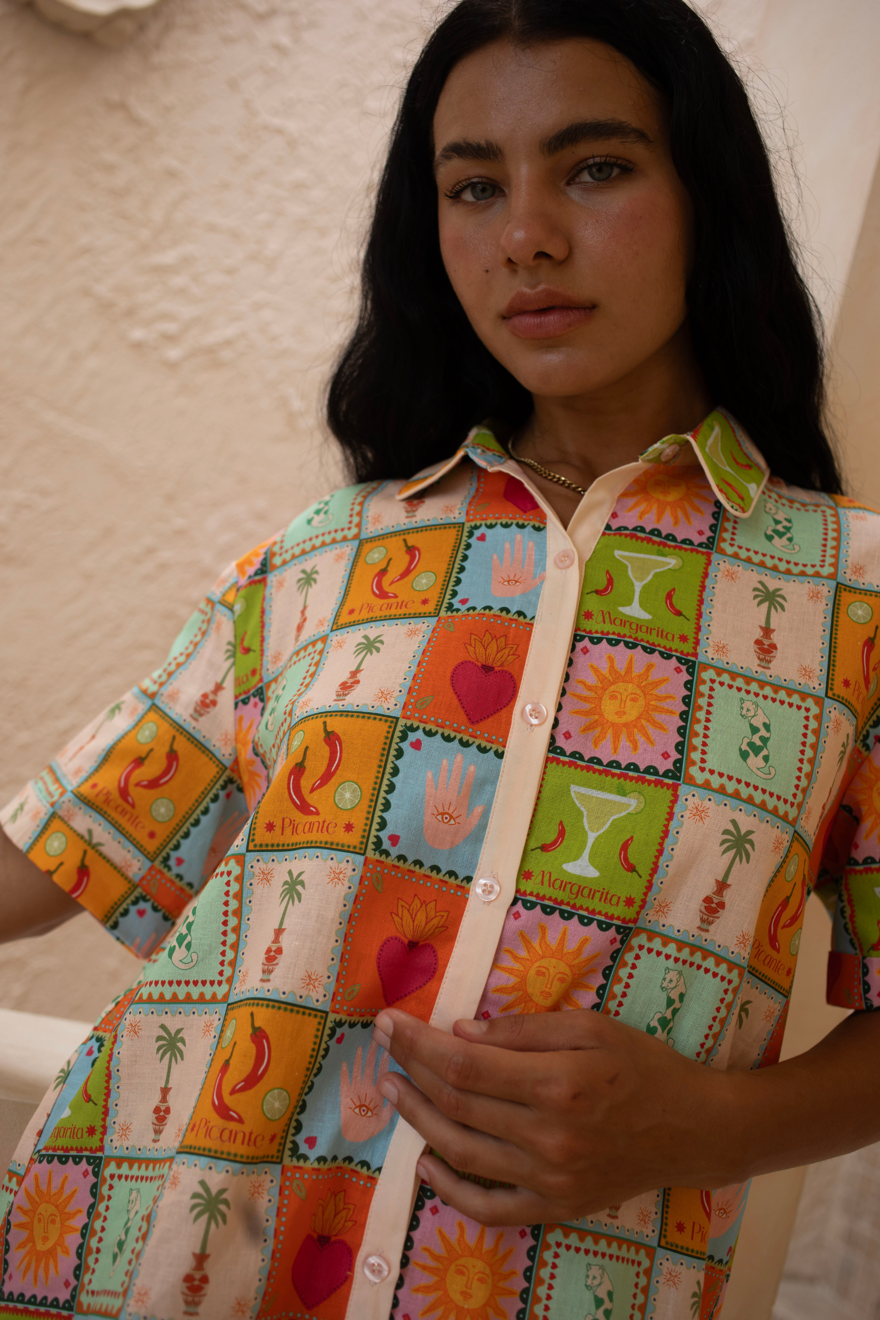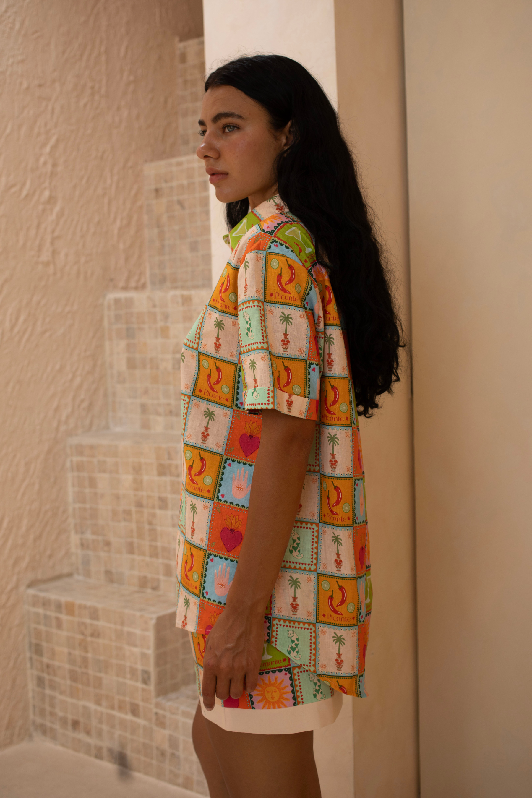 Flirty and bold, the Picante Mini Skirt is made for playful moments. Featuring our Mexico-inspired print, it’s designed to pair back with the matching shirt for the ultimate set or wear solo as your statement piece.