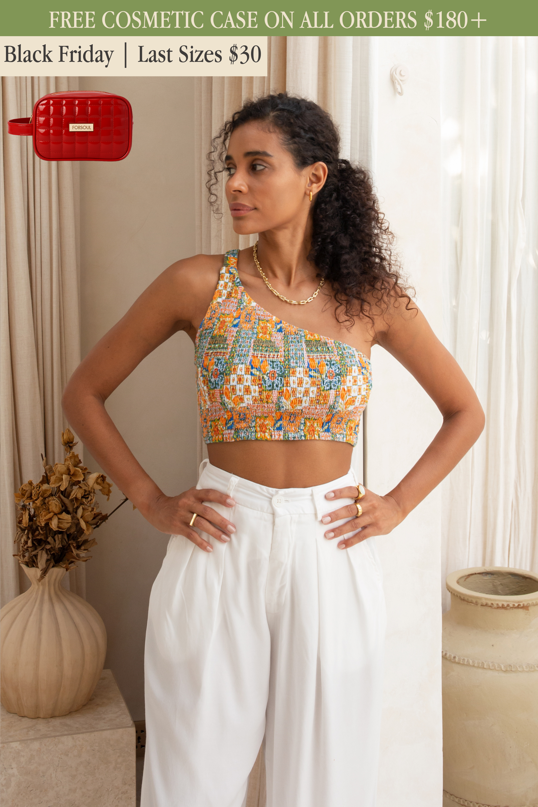 Experience the perfect travel companion with our Campari Olive One Shoulder Top. This versatile one shoulder crop top is not only an everyday essential but also an ideal piece for travel wardrobe.