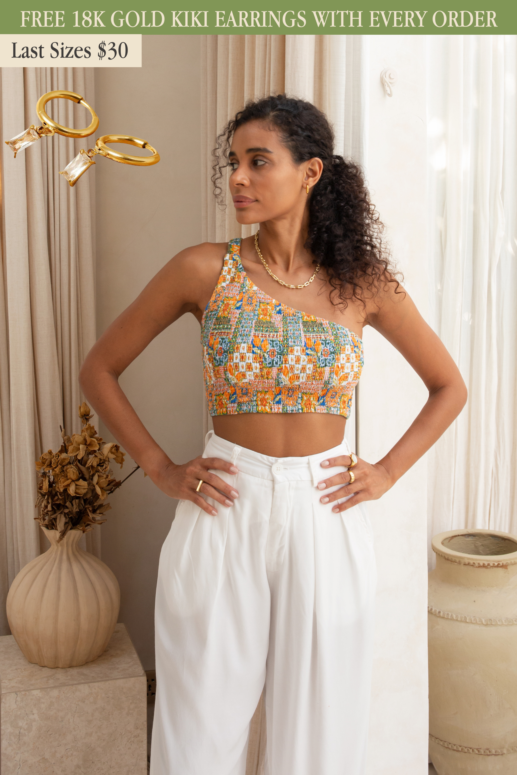 Experience the perfect travel companion with our Campari Olive One Shoulder Top. This versatile one shoulder crop top is not only an everyday essential but also an ideal piece for travel wardrobe.