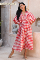 Crafted in an organic cotton timeless gingham print. It features playful balloon sleeves, a shirred neck detail, and a full, feminine skirt that moves with you.