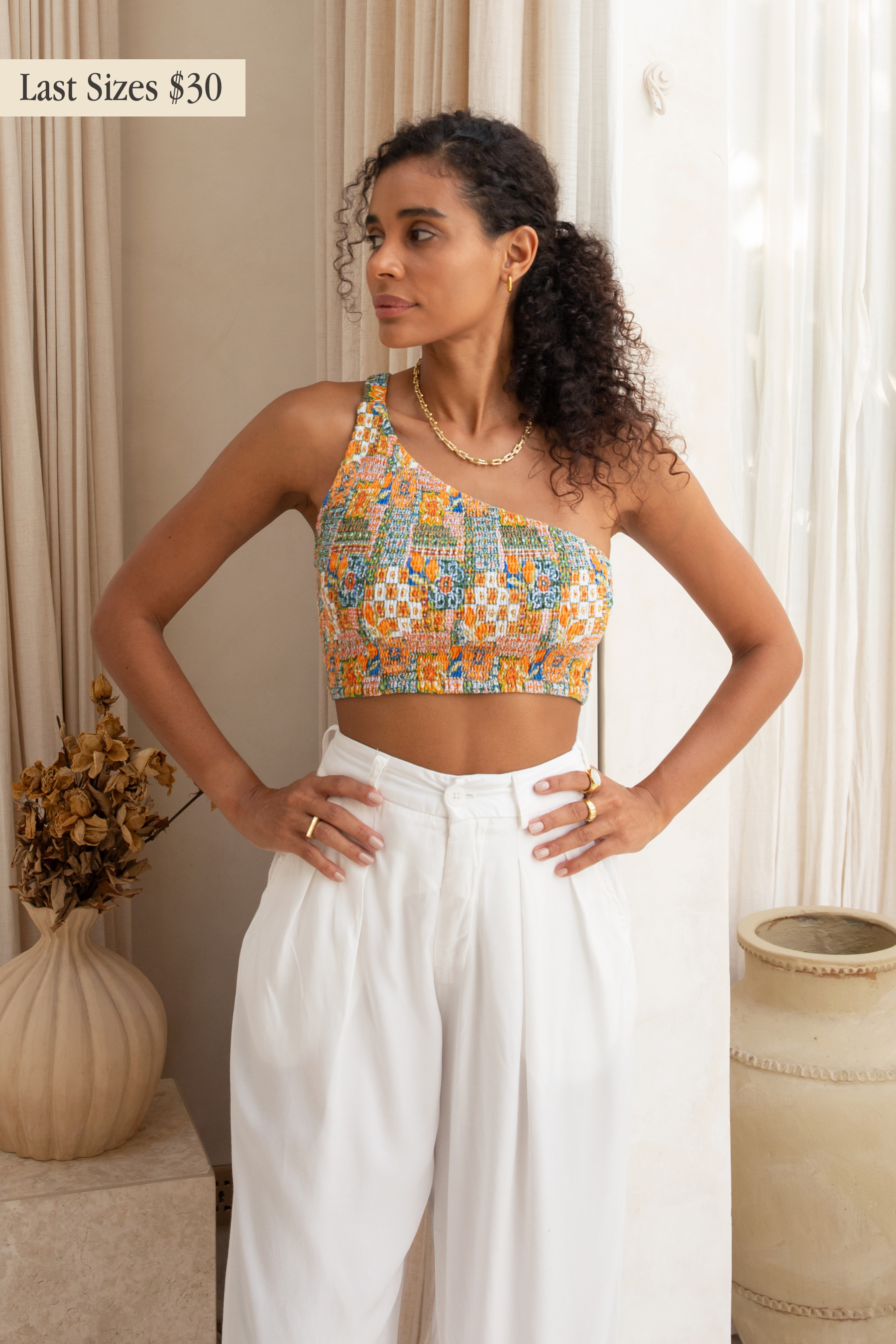Experience the perfect travel companion with our Campari Olive One Shoulder Top. This versatile one shoulder crop top is not only an everyday essential but also an ideal piece for travel wardrobe.