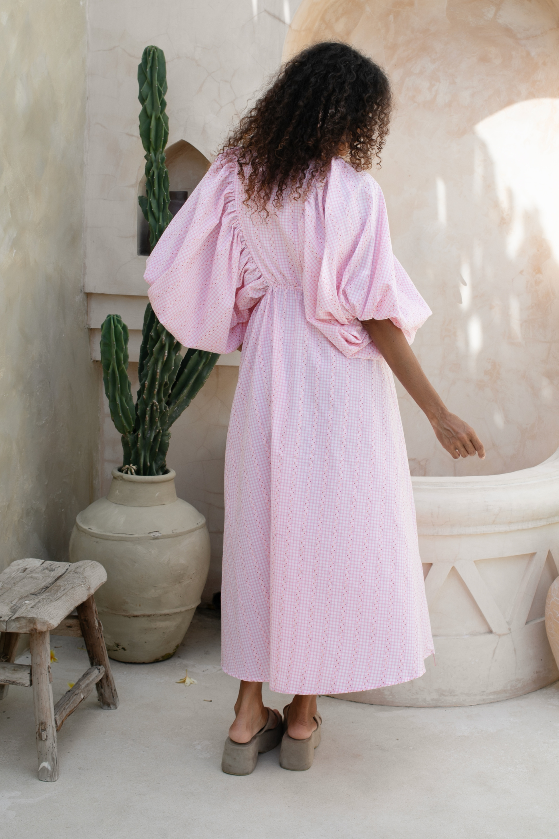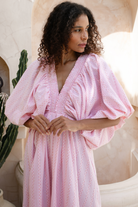 Designed with soft balloon sleeves, a shirred neckline, and a beautifully full mini skirt, this dress delivers comfort and confidence in equal measure. Made ethically and produced in limited quantities, the Mimi Mini Dress is perfect for summer events, long lunches, holiday celebrations, or any moment where you want to feel radiant and refined.