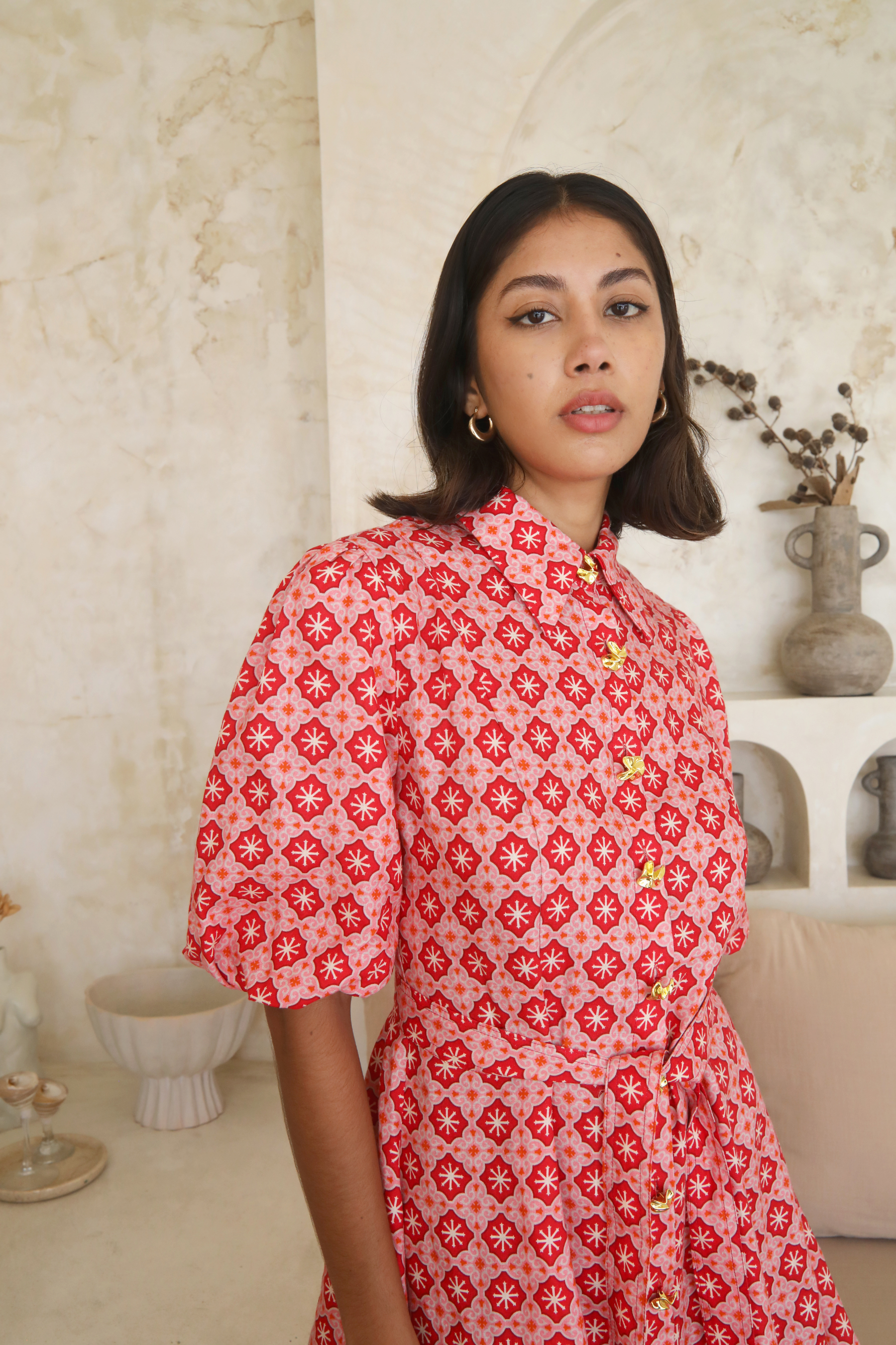 This garment is hand-made and hand-printed with care. Due to this hand-made process each piece is unique and there can be slight irregularities in the print and colour of the garment.