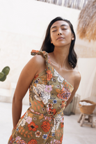 Floaty and feminine, our Gardenia Khaki One Shoulder Mini is here to add that romantic feel to your life.