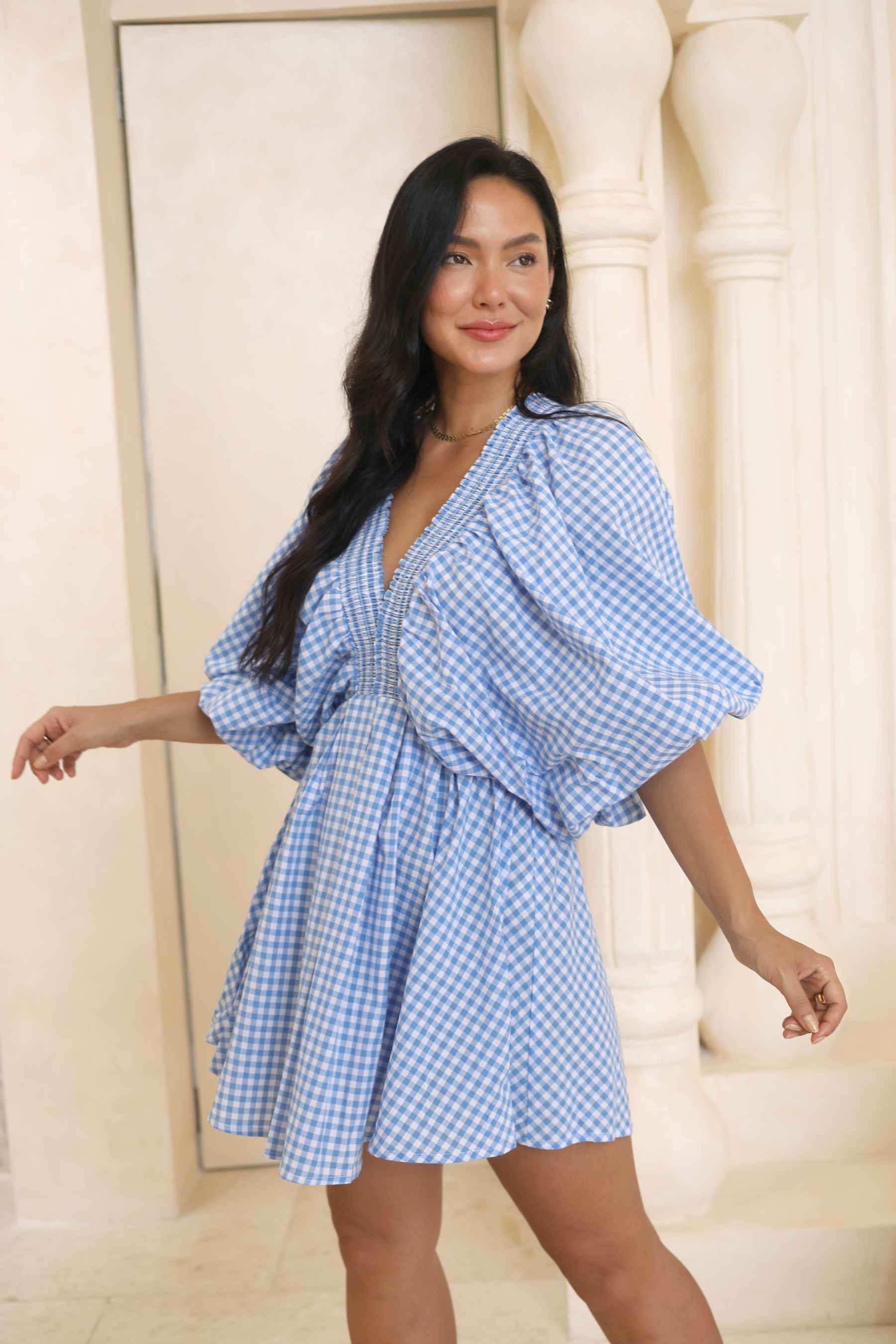 Mimi Blue Gingham Mini Dress
